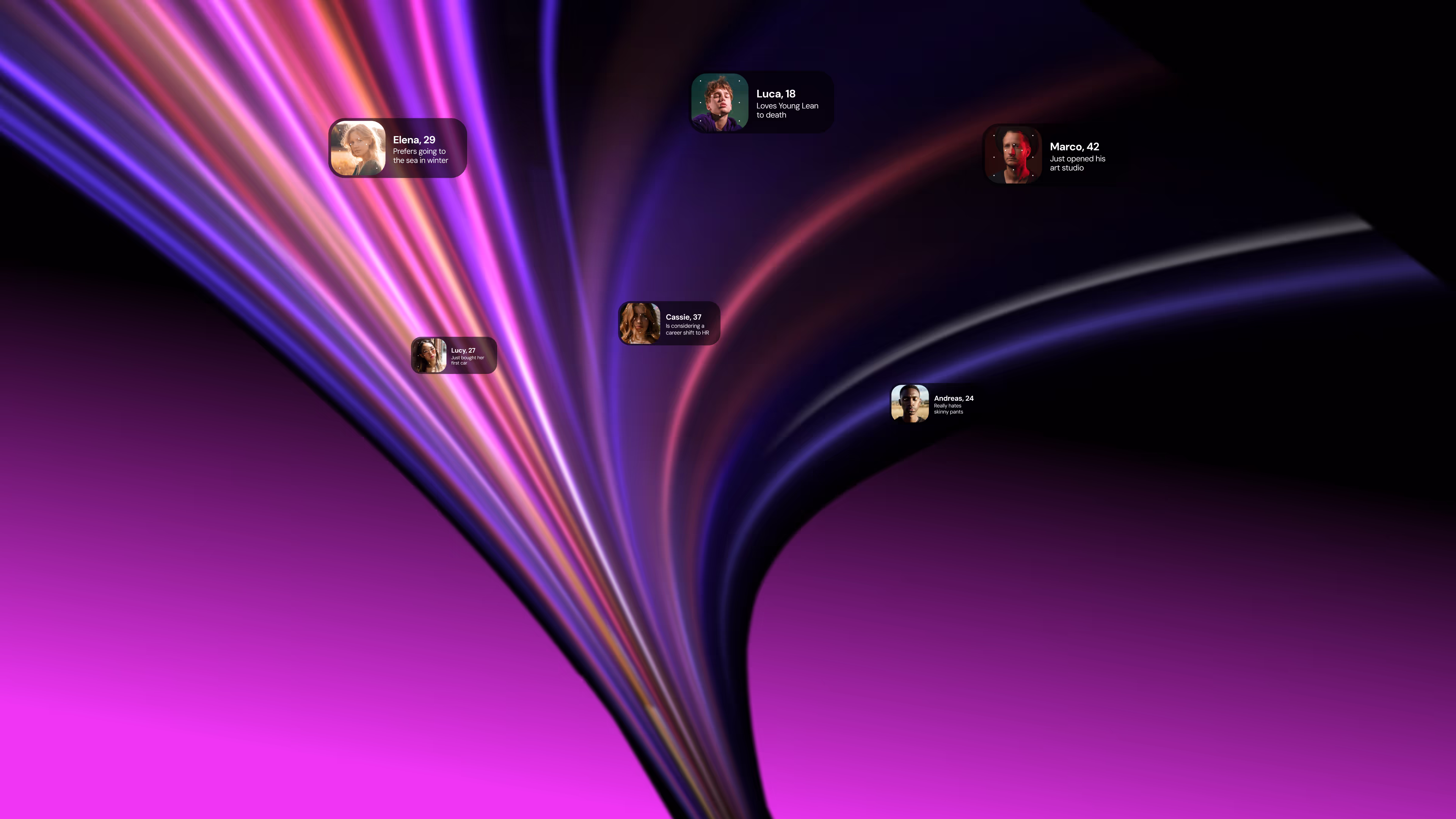 Unlock Hyper Profiling through Cognitive Footprint. Target campaigns for users interests, attention spans, life attitudes, mental habits, content preferences and purchasing patterns.